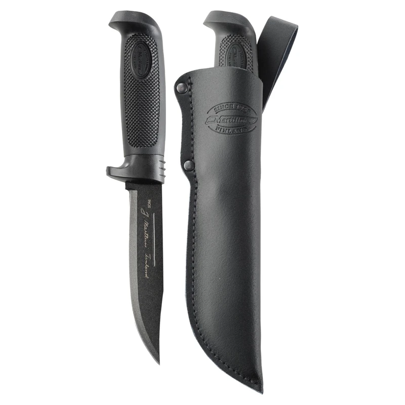 Marttiini Big Game Black Martef a un revĂȘtement qui rĂ©duit considĂ©rablement les frottements tout en offrant une protection efficace contre la corrosion. La poignĂ©e est caoutchoutĂ©e, robuste et offre une prise parfaite dans toutes les conditions mĂ©tĂ©orologiques. GrĂące au revĂȘtement, la lame se dĂ©place extrĂȘmement facilement Ă travers la viande ou le poisson coupĂ©, et le nettoyage de la lame aprĂšs utilisation est extrĂȘmement facile.Big Game Martef est un couteau impressionnant pour traiter les carcasses de gros animaux. Le manche du couteau est plus grand que d’habitude, il tient donc parfaitement dans une main plus grande et offre une meilleure prise en main. Ce couteau est Ă©galement dotĂ© d’une poignĂ©e en caoutchouc texturĂ©e sĂ»re et d’un protĂšge-doigts.Le couteau est livrĂ© avec un Ă©tui en cuir.âą Longueur de lame : 13cmâą Longueur totale: 26cm